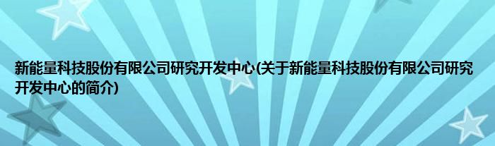 新能量科技股份有限公司研究开发中心(关于新能量科技股份有限公司研究开发中心的简介)