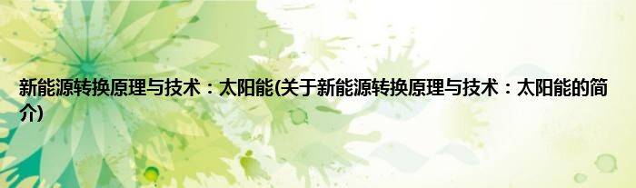新能源转换原理与技术:太阳能(关于新能源转换原理与技术:太阳能的简介)