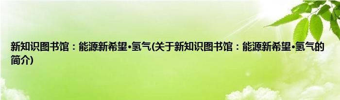本文关于新知识图书馆:能源新希望·氢气的简介就讲解完毕,希望对大家有所帮助。