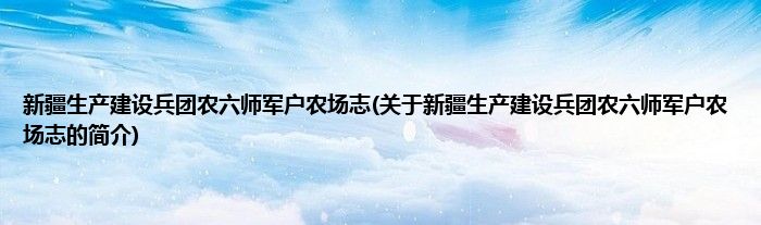 1、 《新疆生产建设兵团农六师军户农场志》是2004年2月新疆电子出版社出版的图书。