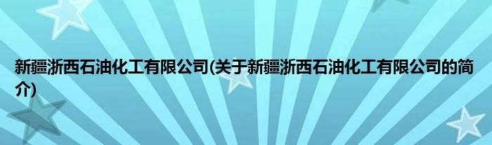 本文关于新疆浙西石油化工有限公司的简介就讲解完毕,希望对大家有所帮助。