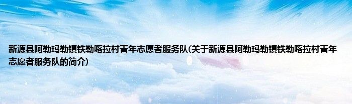 大家好,新源县阿勒玛勒镇铁勒喀拉村青年志愿者服务队,关于新源县阿勒玛勒镇铁勒喀拉村青年志愿者服务队的简介很多人还不知道,现在让我们一起来看看吧!
