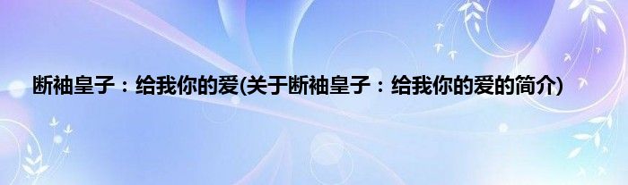 本文关于断袖皇子:给我你的爱的简介就讲解完毕,希望对大家有所帮助。