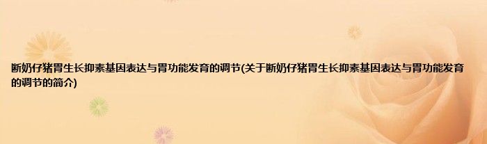本文关于断奶仔猪胃生长抑素基因表达与胃功能发育的调节的简介就讲解完毕,希望对大家有所帮助。