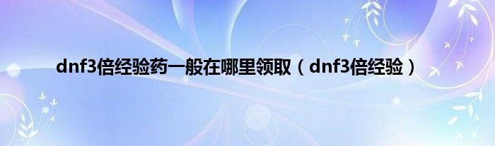 大家好,精选小编来为大家解答以上问题。dnf3倍经验药一般在哪里领取,dnf3倍经验很多人还不知道,现在让我们一起来看看吧!