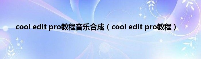 大家好,精选小编来为大家解答以上问题。cool edit pro教程音乐合成,cool edit pro教程很多人还不知道,现在让我们一起来看看吧!