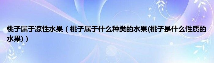 大家好,小科来为大家解答以上问题。桃子属于凉性水果,桃子属于什么种类的水果(桃子是什么性质的水果)很多人还不知道,现在让我们一起来看看吧!