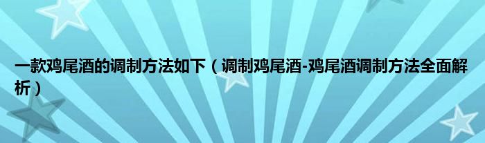 大家好,小科来为大家解答以上问题。一款鸡尾酒的调制方法如下,调制鸡尾酒-鸡尾酒调制方法全面解析很多人还不知道,现在让我们一起来看看吧!