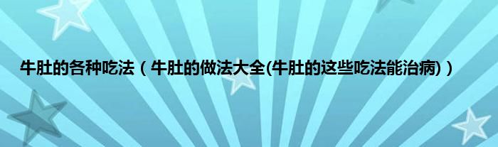 大家好,小科来为大家解答以上问题。牛肚的各种吃法,牛肚的做法大全(牛肚的这些吃法能治病)很多人还不知道,现在让我们一起来看看吧!