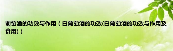 大家好,小科来为大家解答以上问题。葡萄酒的功效与作用,白葡萄酒的功效(白葡萄酒的功效与作用及食用)很多人还不知道,现在让我们一起来看看吧!