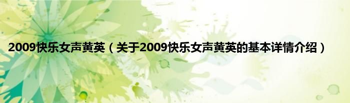 本文关于2009快乐女声黄英的基本详情介绍就讲解完毕,希望对大家有所帮助。