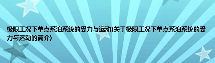极限工况下单点系泊系统的受力与运动(关于极限工况下单点系泊系统的受力与运动的简介)