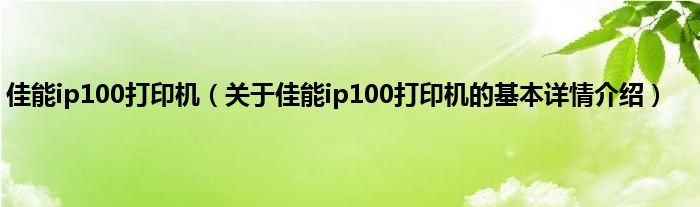 本文关于佳能ip100打印机的基本详情介绍就讲解完毕,希望对大家有所帮助。