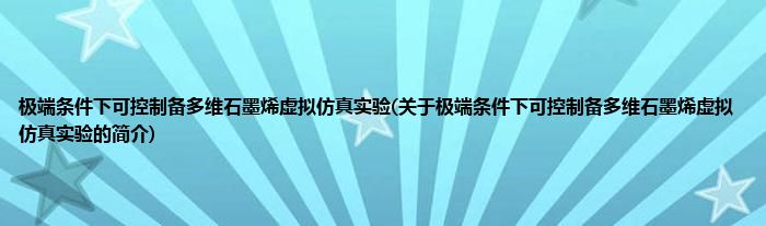 极端条件下可控制备多维石墨烯虚拟仿真实验(关于极端条件下可控制备多维石墨烯虚拟仿真实验的简介)