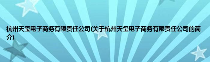 本文关于杭州天玺电子商务有限责任公司的简介就讲解完毕,希望对大家有所帮助。