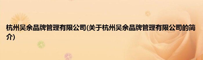 本文关于杭州吴余品牌管理有限公司的简介就讲解完毕,希望对大家有所帮助。