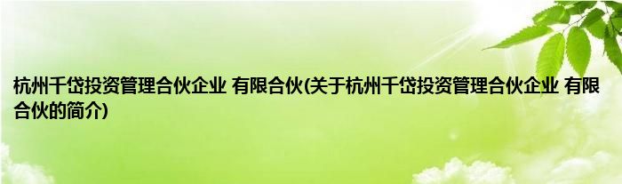 本文关于杭州千岱投资管理合伙企业 有限合伙的简介就讲解完毕,希望对大家有所帮助。