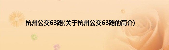 本文关于杭州公交63路的简介就讲解完毕,希望对大家有所帮助。