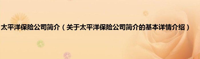 本文关于太平洋保险公司简介的基本详情介绍就讲解完毕,希望对大家有所帮助。