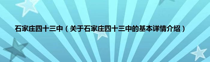 本文关于石家庄四十三中的基本详情介绍就讲解完毕,希望对大家有所帮助。