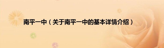 大家好我是小蝌蚪,南平一中,关于南平一中的基本详情介绍很多人还不知道,那么现在让我们一起来看看吧!