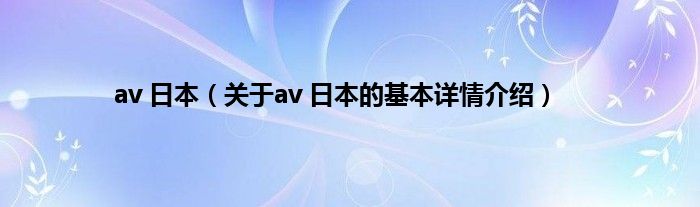 大家好我是小蝌蚪,av 日本,关于av 日本的基本详情介绍很多人还不知道,那么现在让我们一起来看看吧!