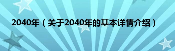 本文关于2040年的基本详情介绍就讲解完毕,希望对大家有所帮助。