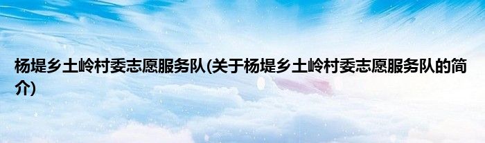 本文关于杨堤乡土岭村委志愿服务队的简介就讲解完毕,希望对大家有所帮助。