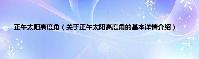 本文关于正午太阳高度角的基本详情介绍就讲解完毕,希望对大家有所帮助。