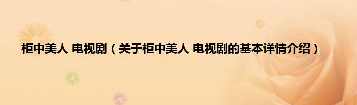 本文关于柜中美人 电视剧的基本详情介绍就讲解完毕,希望对大家有所帮助。