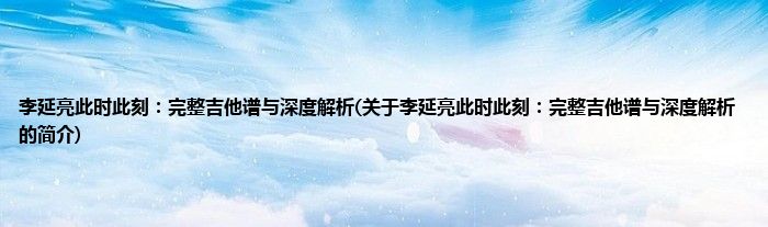 本文关于李延亮此时此刻:完整吉他谱与深度解析的简介就讲解完毕,希望对大家有所帮助。