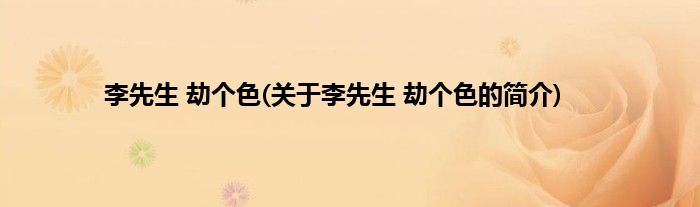 大家好,李先生,劫个色,关于李先生,劫个色的简介很多人还不知道,现在让我们一起来看看吧!