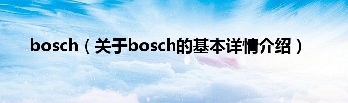 本文关于bosch的基本详情介绍就讲解完毕,希望对大家有所帮助。