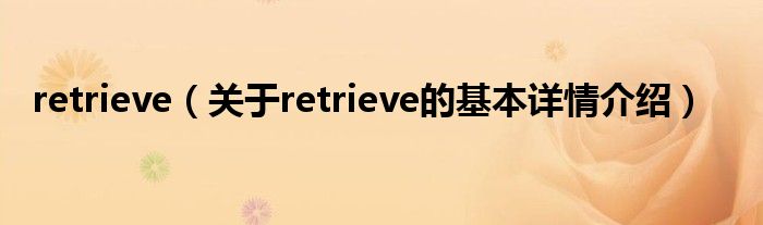 本文关于retrieve的基本详情介绍就讲解完毕,希望对大家有所帮助。