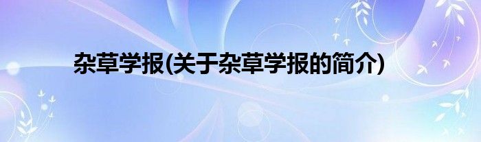 本文关于杂草学报的简介就讲解完毕,希望对大家有所帮助。