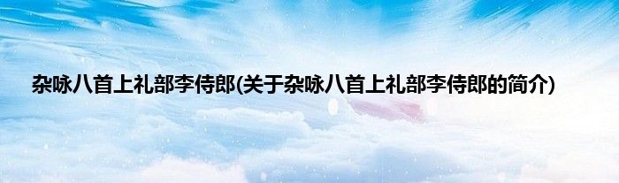 本文关于杂咏八首上礼部李侍郎的简介就讲解完毕,希望对大家有所帮助。