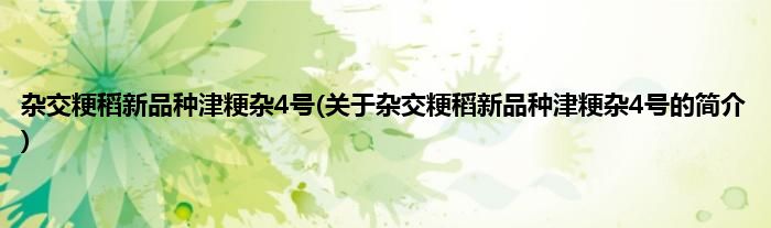 本文关于杂交粳稻新品种津粳杂4号的简介就讲解完毕,希望对大家有所帮助。