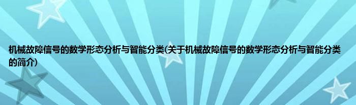 大家好,机械故障信号的数学形态分析与智能分类,关于机械故障信号的数学形态分析与智能分类的简介很多人还不知道,现在让我们一起来看看吧!