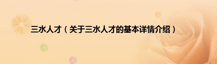 本文关于三水人才的基本详情介绍就讲解完毕,希望对大家有所帮助。