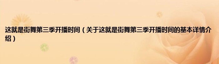 本文关于这就是街舞第三季开播时间的基本详情介绍就讲解完毕,希望对大家有所帮助。
