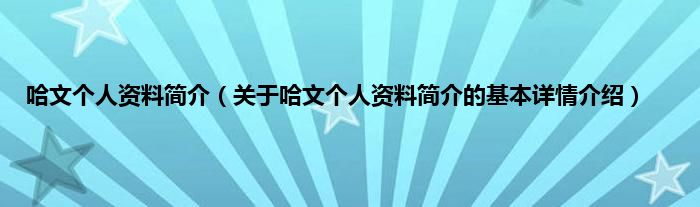 本文关于哈文个人资料简介的基本详情介绍就讲解完毕,希望对大家有所帮助。