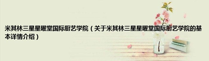本文关于米其林三星星曜堂国际厨艺学院的基本详情介绍就讲解完毕,希望对大家有所帮助。