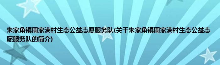 本文关于朱家角镇周家港村生态公益志愿服务队的简介就讲解完毕,希望对大家有所帮助。