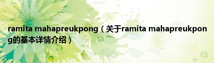 本文关于ramita mahapreukpong的基本详情介绍就讲解完毕,希望对大家有所帮助。