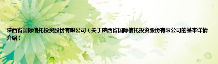 本文关于陕西省国际信托投资股份有限公司的基本详情介绍就讲解完毕,希望对大家有所帮助。