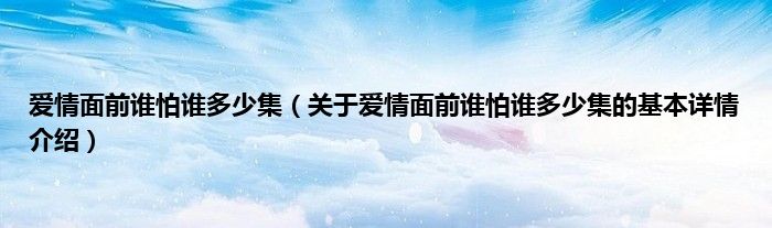 本文关于爱情面前谁怕谁多少集的基本详情介绍就讲解完毕,希望对大家有所帮助。