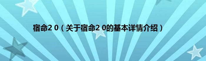 本文关于宿命2 0的基本详情介绍就讲解完毕,希望对大家有所帮助。