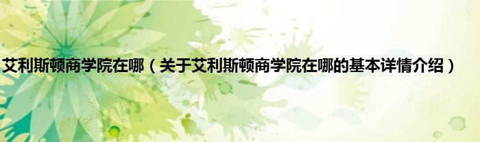 本文关于艾利斯顿商学院在哪的基本详情介绍就讲解完毕,希望对大家有所帮助。