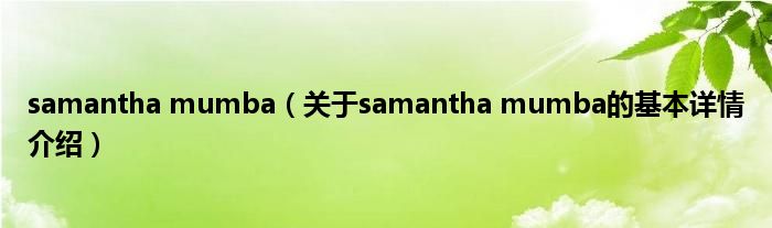 本文关于samantha mumba的基本详情介绍就讲解完毕,希望对大家有所帮助。