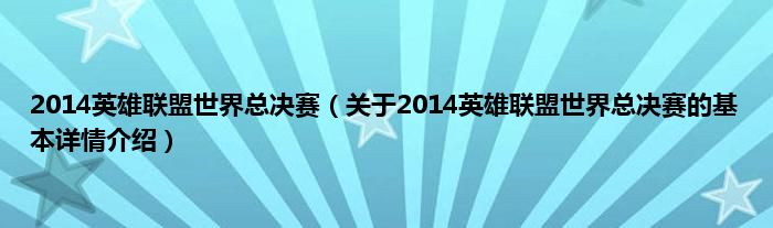 本文关于2014英雄联盟世界总决赛的基本详情介绍就讲解完毕,希望对大家有所帮助。